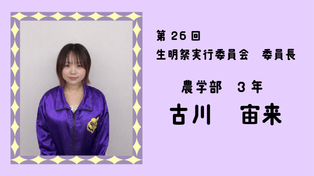 第26回生明祭実行委員会委員長の古川宙来でございます。